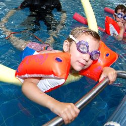 Wir üben in kleinen Gruppen bis maximal 6 Personen, damit jeder Kursteilnehmer genug Platz im Schwimmbecken hat.